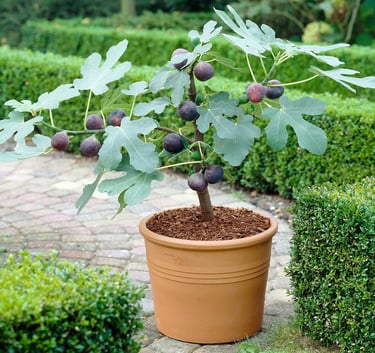 it’s great for pots: stays manageable with pruning and produces sweet edible figs in containers. Light: full sun (best fruiting with 6–8+ hours). Water: keep evenly moist while growing; let the top layer dry slightly between waterings. Climate: cold-hardy down to about -10°F; in very cold winters, a pot can be protected/moved to a sheltered spot. Care tip: prune in late winter/early