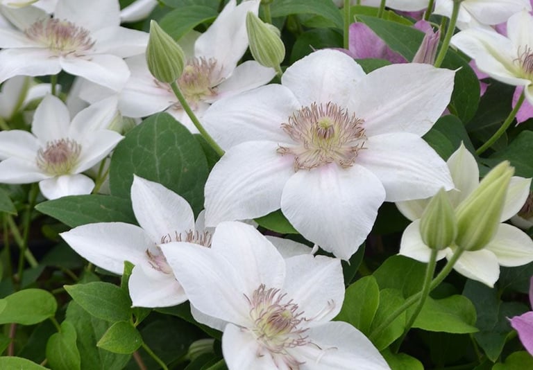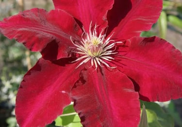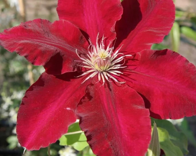 The Look: One of the best true-red Clematis varieties available, featuring massive, velvety blooms with creamy centers.