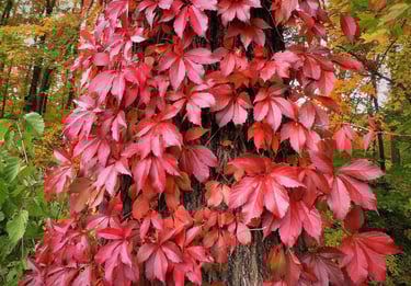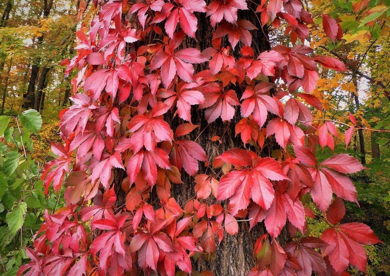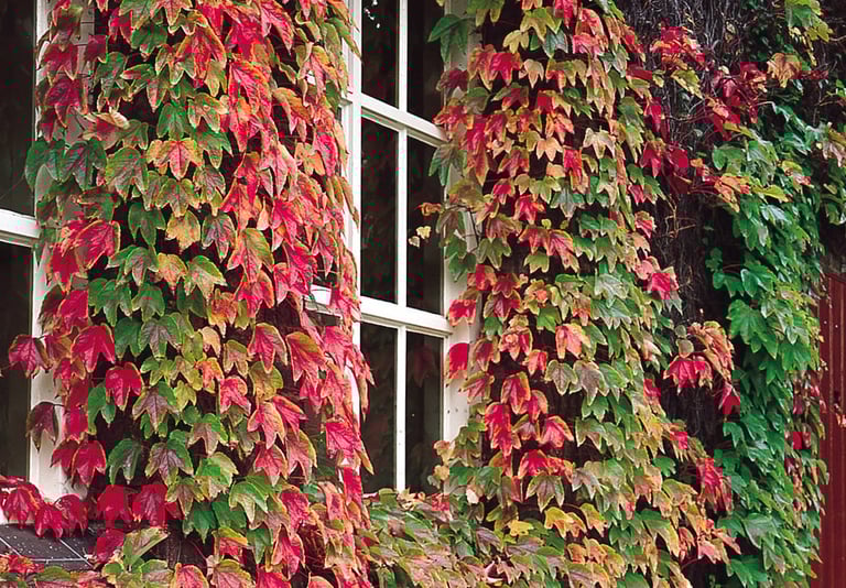 The Look: The classic "Ivy League" look. Glossy three-lobed leaves that provide a flat, green "living wall" before turning fiery scarlet and purple in autumn.