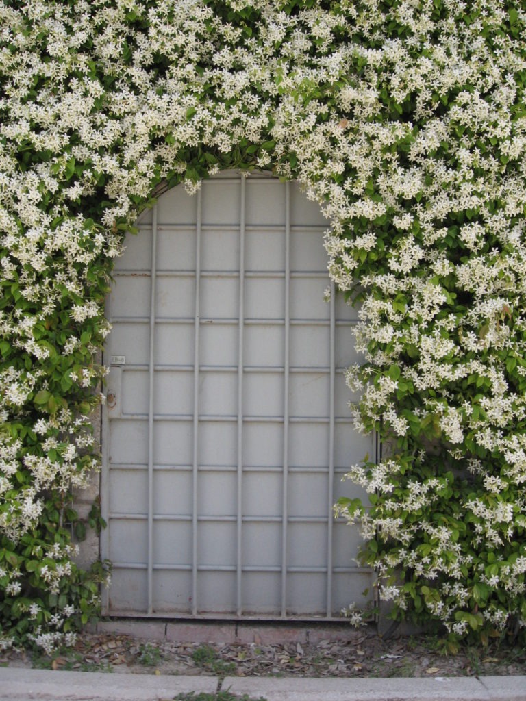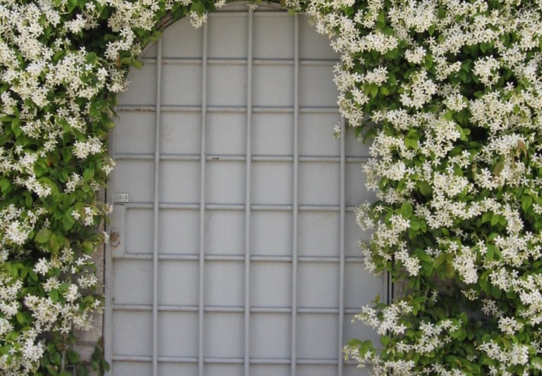The Look: An evergreen vine with glossy dark leaves and tiny, white, pinwheel-shaped flowers that smell like a tropical paradise.