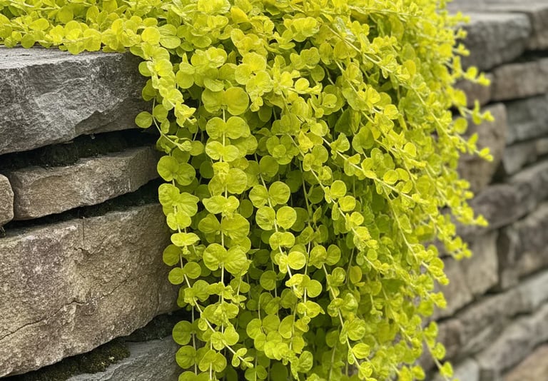 The Look: A low-growing "climber" that acts more as a cascading trailer, featuring brilliant chartreuse/gold coin-shaped leaves.