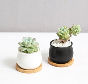 (2.6", matte black or white ceramic) come with a bamboo tray and are perfect for small succulents-clean, modern look