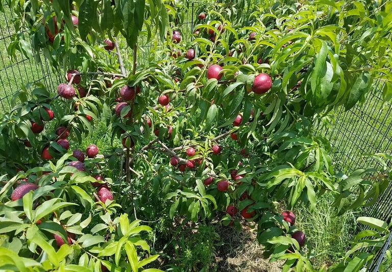 The Fruit: Large, luscious nectarines with a perfect balance of acid and sugar. It offers all the rich flavor of a peach without the fuzz! (Zones 5-8).