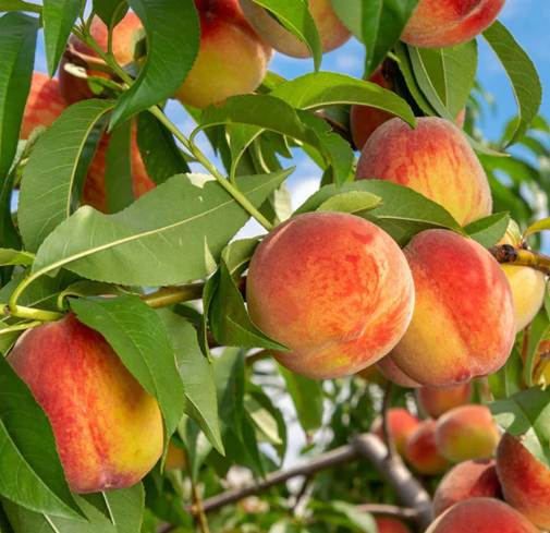 The Fruit: A classic yellow-fleshed peach with a perfect balance of sugar and tang. It is a massive, firm fruit that holds up wonderfully for canning and baking. (Zones 5-9).