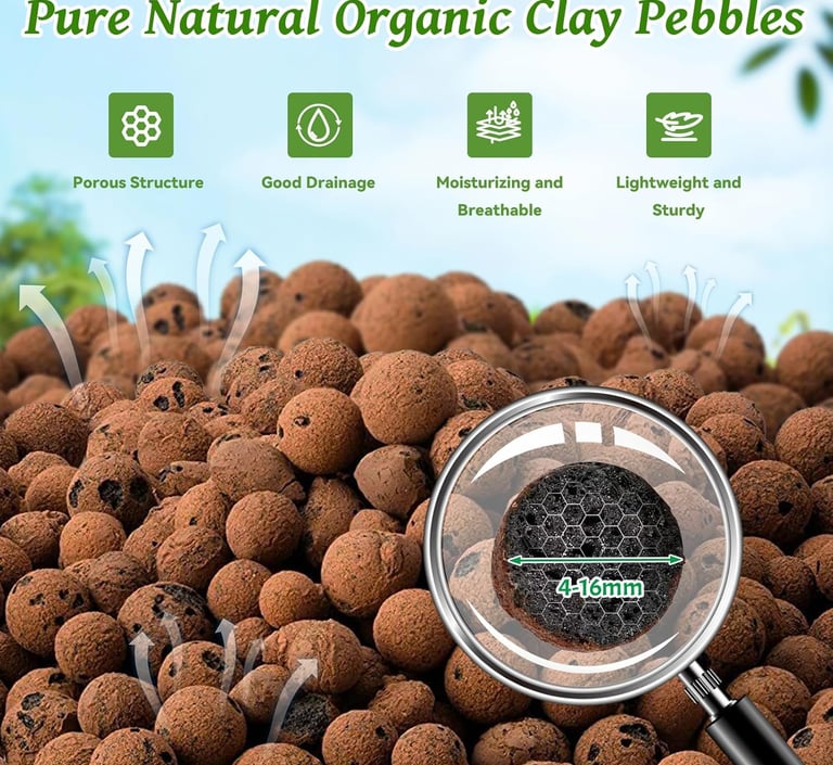 lightweight clay balls you can use for water-growing and hydroponic setups—great for supporting roots, improving airflow.