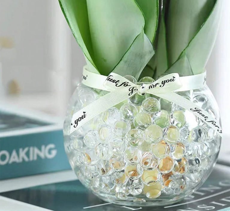 placed inside plant vases around the roots to help hold moisture while adding a clean, decorative look to water-grown or soilless plant setups.